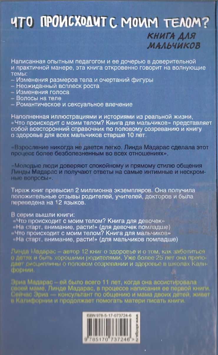 Взросление связано с целым букетом ощущений. С одной стороны, вас ждут удивительные вещи; с другой стороны, впереди множество перемен — в физическом развитии, в жизни, в отношениях с родителями, с друзьями и с противоположным полом. Вероятно, где-то когда-то жил такой человек, у которого период полового созревания прошел гладко, но мы бы не стали за это ручаться. Если вы типичный подросток, то в это непростое для вас время вам придется столкнуться с некоторыми проблемами. Мы очень надеемся, что эта книга поможет вам справиться с ними.