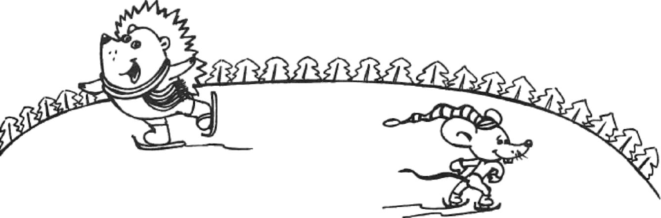 — Вася, Муся! Идите к нам! — позвали Ёжик и Мышонок. Они катались на коньках. — Давайте кататься вместе!
