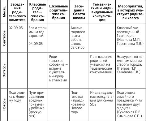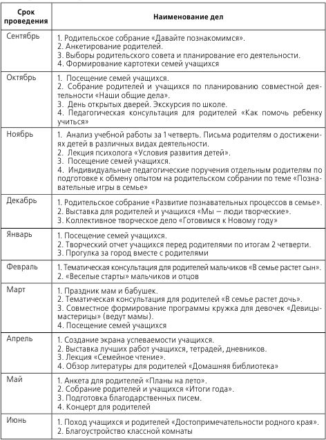4. Планирование работы с родителями (можно оформить в виде таблицы):
