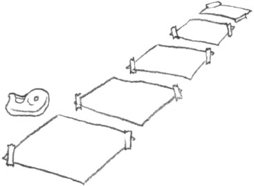 • Наклейте на пол несколько листов плотной бумаги двух-трех цветов так, чтобы получилась дорожка.