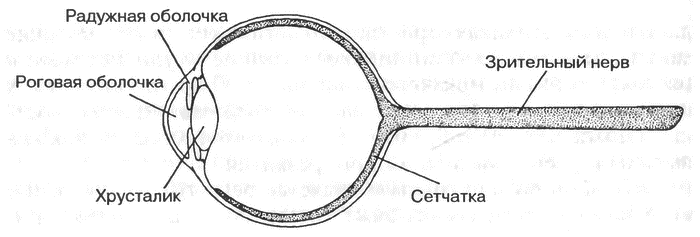 Человеческий глаз является непосредственным органом мозга. Через роговую оболочку (своеобразное «окно» глаза) свет поступает на прозрачный хрусталик, фокусирующий его на сетчатку, которая представляет собой слой нервных клеток, устилающих дно глаза. Возникающий в сетчатке импульс по зрительному нерву поступает в мозг, где происходит кажущийся человеку мгновенным многоступенчатый процесс переработки и восприятия информации, достаточно сложный и до конца не понятый.