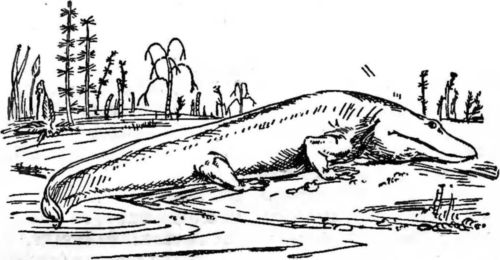 Рис. 61. Реконструкция маленькой пенсильванской амфибии (дипловертеброна).