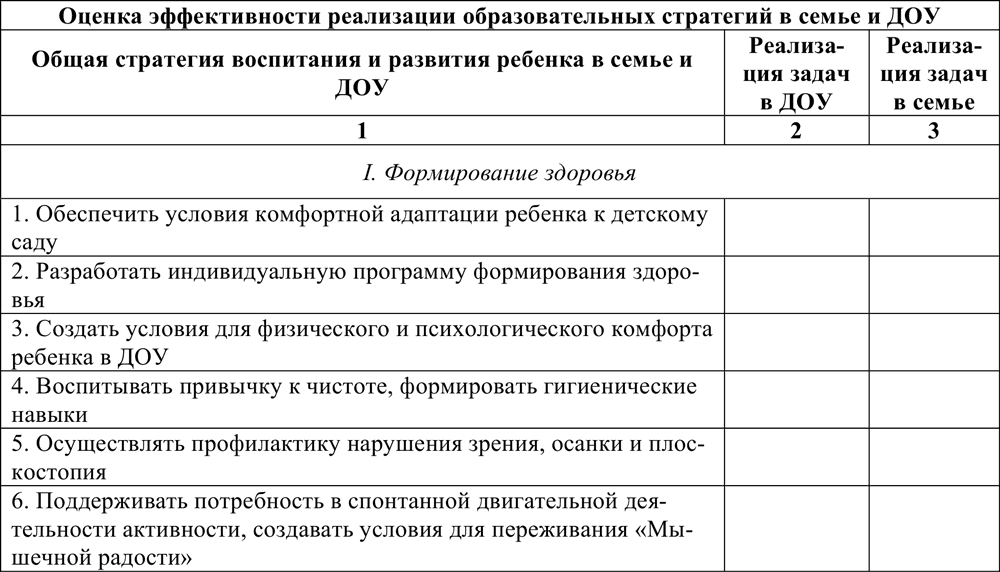 Оценить эффективность реализации образовательных стратегий в семье и в ДОУ.