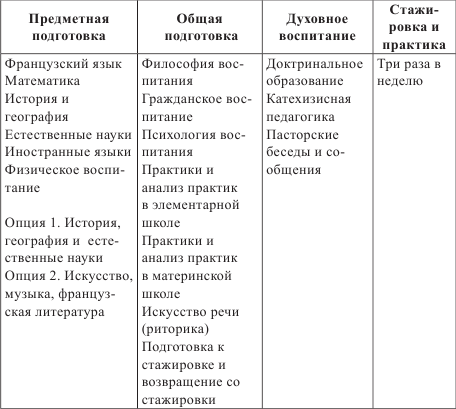 Ниже приведен учебный план первого года обучения в институте подготовки учителей в г. Тэсси. Это частное католическое заведение, где готовят преподавателей начальной школы для четырех департаментов региона Шампань-Арденны.