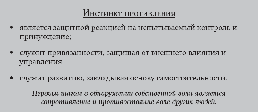 Противление – это естественная защита ребенка от чужой воли, позволяющая открыть собственные предпочтения, желания, устремления и цели. Помимо приглашения к привязанности, детям также нужно, чтобы приветствовалось развитие их самостоятельности. Одна мама рассказала мне: «У нас с мамой были замечательные отношения, пока мне не исполнилось три года и у меня не появилось собственное мнение. Она не могла вынести, что у меня появились планы, отличные от ее. Поэтому с того дня мы постоянно боролись с ней».