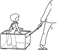 Рис. 13.21. Ребенок учится сохранять равновесие и при этом автоматически опирается на руки и держится ими. Такая тренировка доставит ребенку огромную радость. Со временем он сможет сам толкать или возить за собой ящик.