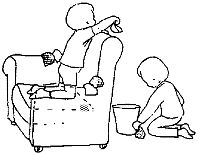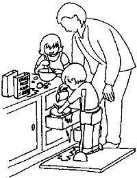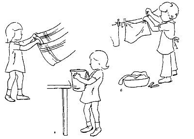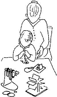 Я надеюсь, что все сказанное выше показало, насколько необходимо для всех детей обучение в процессе игры, как это готовит их к учебе в школе. Рисунки, приведенные ниже, подскажут вам, как превратить обычные детские игры в обучение и с их помощью подготовить ребенка к обретению самостоятельности. Часть рисунков посвящена трудностям, которые возникают у детей со спастической гемиплегией, и дают советы как их преодолеть.