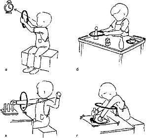 Рис. 13.26. Игры на движения и координацию глаз-рука: а – в положении сидя; б – в положении стоя.