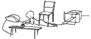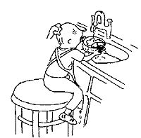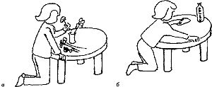 Рис. 13.24. Ребенку легче осваивать тонкие движения пальцев рук, держать предмет одной рукой и действовать другой, если, сидя за столом, он опирается на локти.