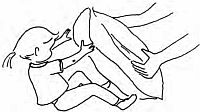 Рис. 13.40. Играя с подушкой, ребенок вынужден действовать обеими руками.