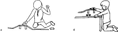Рис. 13.29. а – надо взять, потянуть, подоткнуть; б – надо сложить и повесить на перекладину.