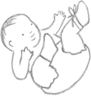 • Возьмите ребенка на руки и подвесьте рядом с его ножками погремушки или колокольчики.