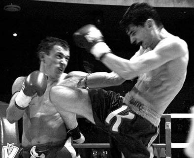 На этой дистанции тайбоксеры используют в основном удары коленями, реже – локтями.