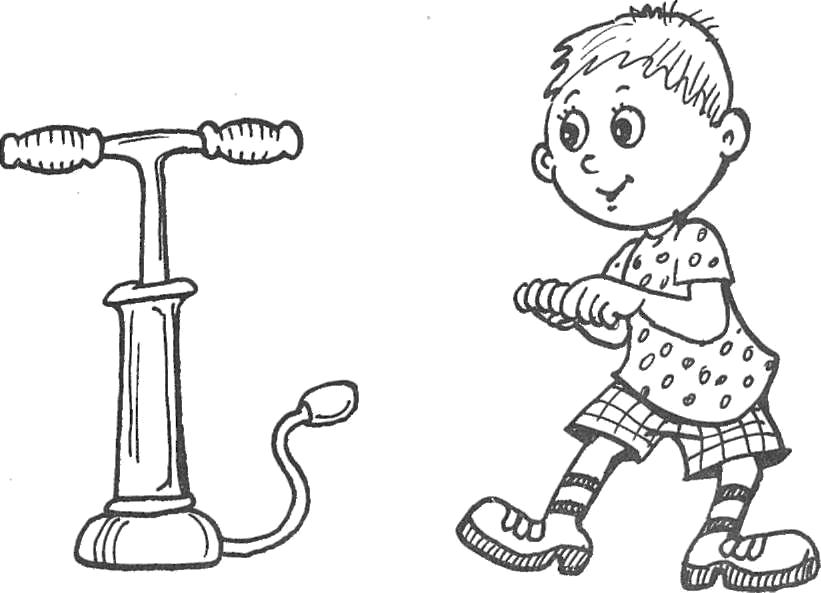 Ребёнок делает носом вдох и на выдохе произносит "с-с-с...", одновременно делая такие движения правой ногой и руками, будто бы он накачивает насосом мячик или колесо. Звук "с-с-с..." следует произносить по 5 раз, делая короткий вдох носом.