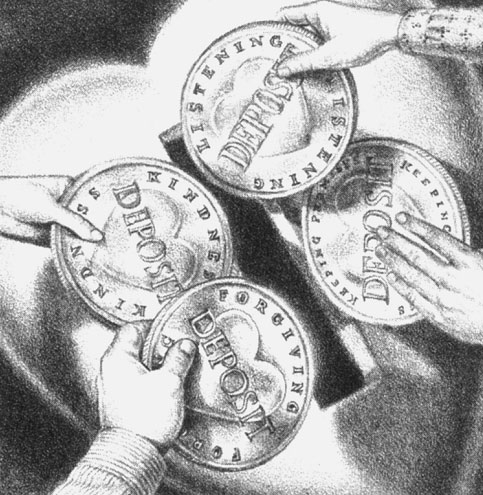 Заметьте, что в этом замечательном примирении свою роль сыграли все четыре человеческих дарования, сочетание которых дало женщине достаточно воли, чтобы простить и воссоединиться со своей семьей, испытав счастье, принесенное этим воссоединением. Посмотрите, с какой глубиной самосознания женщина прониклась происходящим. Обратите внимание на ее совестливость. Заметьте также, как знакомство с концепцией эмоционального банковского счета помогло ей увидеть выход из сложившейся ситуации.
