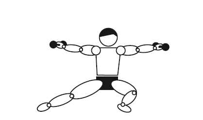 7. И.п. о.с., гантели в руках вдоль туловища. Приседание на одной ноге в сторону, руки с гантелями в сторону (рисунок 122).