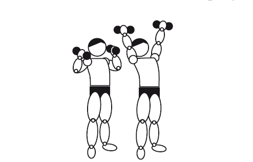 8. И.п. – стоя, ноги на ширине плеч, руки вытянуты вверх, в руках гантели. Сгибание и разгибание рук в локтевых суставах, опуская и поднимая отягощение над головой (рисунок 123).